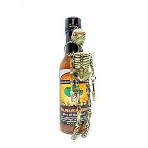 デイ・オブ・ザ・デッド ホットソース フルスケルトンキーチェーン付き - 5オンス Fuego Maya Day of The Dead Hot Sauce with Full Skeleton Key Chain - 5oz