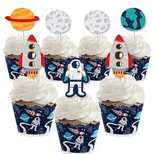 ビッグドット オブ ハピネス ブラスト オフ トゥ 宇宙 - カップケーキ デコレーション - ロケット船 ベビーシャワーや誕生日パーティー カップケーキ ラッパーとおやつピック キット - 24個セット Big Dot of Happiness Blast Off to Outer Space