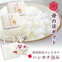 母の日2025ギフト 実用的 花以外 おしゃれ 食品 ハンカチ お米 新潟産コシヒカリ 2合×2 4合 母の日 プレゼント ギフト 70代 60代 50代 40代 健康 もらって嬉しいもの かわいい 母の日メッセージ ラッピング 無料 母の日シール 袋付き ハンカチの色選べる れんこん 縁起物