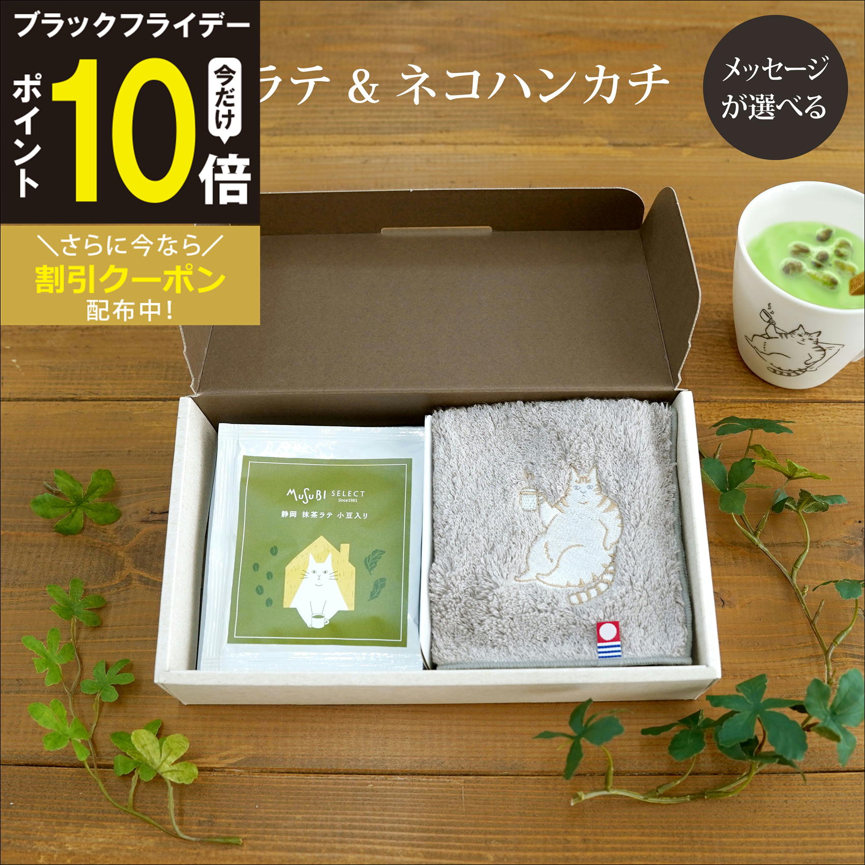 猫好きおすすめ BOXギフト メッセージカードが選べる 刺繍入りハンカチ&抹茶ラテ/小豆入パウンドケーキ お礼 ギフト ありがとう おめでとう 2500円 かわいい 誕生日プレゼント 猫好き おしゃれ 送別会 ネコ 猫 誕生日 プレゼント マグ ギフトセット お菓子 女性 猫の刺繍入りタオルハンカチ 今治産で安心安全 メッセージ付き ネコ好きさんへのプレゼントに最適です。 5