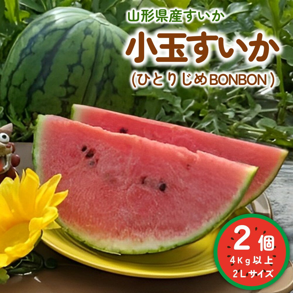 【ふるさと納税】【フルーツ王国直送!】山形の 小玉 すいか ( ひとりじめ BONBON ) 2個 計 4kg 以上 2L サイズ 果物 フルーツ 山形県 上山市 0033-2602