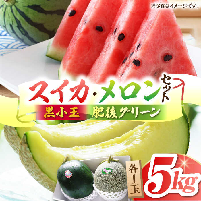 【ふるさと納税】【先行予約】黒小玉 スイカ (ひとりじめBonBon)・肥後グリーンメロン のセット 各1玉(計 約4.8kg)【岡山農園】[ZBY003] 果物 くだもの すいか 西瓜 メロン めろん 季節物 旬 産地直送 甘さ 糖度 食感 サイズ 2種 セット 九州 熊本県 山鹿