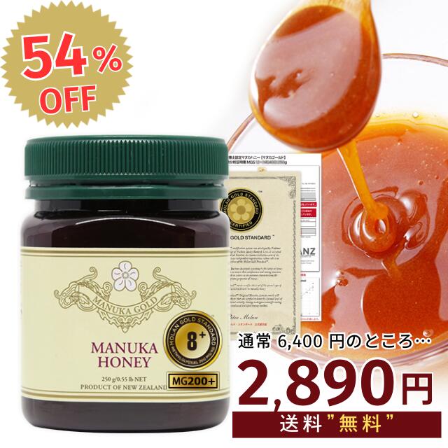 マヌカハニー 8+ 250g 1本 【54%OFF!通常6400円⇒2890円】さらにクーポンで5%OFF!認定書/分析書付き MGS認証 マヌカゴールド MG200以上 モノフローラル 生 はちみつ 非加熱 無添加 マリリニュージーランド 送料無料