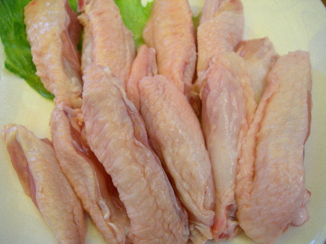 国産鶏 手羽中 ハーフ 商品詳細 チキンボンボンの作り方 袋に手羽中ハーフを入れ、そこに、にんにく(お好みで)醤油、あら挽き1、ブラックペッパー、を入れ、1日冷蔵庫に入れ味を染み込ませる。 2、袋から手羽中ハーフを取り出し、片栗粉をまぶして油で揚げれば完成!!(漬けダレを完全に切った状態で片栗粉をまぶさないと焦げてしまいます。) 冷凍商品 内容量 2000g 発送方法 冷蔵・冷凍商品どちらとも同梱包可能です。ただし、冷蔵発送の場合、解凍・半解凍状態にてご到着致します。ご希望の日時にご到着するようお届け致します。 解凍方法 解凍方法:すばやく解凍するために一番よい方法は、氷水の中で解凍する方法です。2重にしたポリ袋(ビニール袋)にパックのまま入れ、空気をなるべく抜いて輪ゴム等で口を縛ります。 発泡スチロールの箱やボール等に氷水を用意しまして、水にすべてつかるようにして解凍します。※浮き上がる場合は重しをのせてください。 やむを得ず冷蔵庫で解凍する場合もパックの表面を水にくぐらせてから解凍してください。解凍が早くなります。手羽中とは・・? 手羽先の太い部分を手羽中と言います。 その手羽中を半分にカットしてあるのが手羽中ハーフになります。 スーパーなどで買うと結構高いチキンボンボンがご家庭で簡単に出来ちゃいます!! バーベキューなどで焼いても美味しいですよ!!