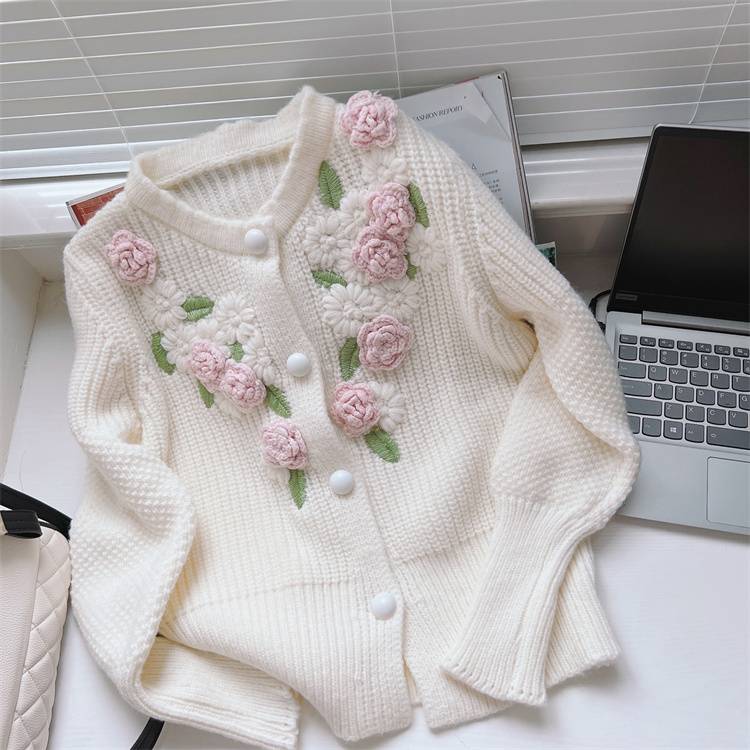 花柄 冬 2022新型 スリム ゆったりする ニットトップス コート 怠惰な風 カーディガン 短いスタイル(N)