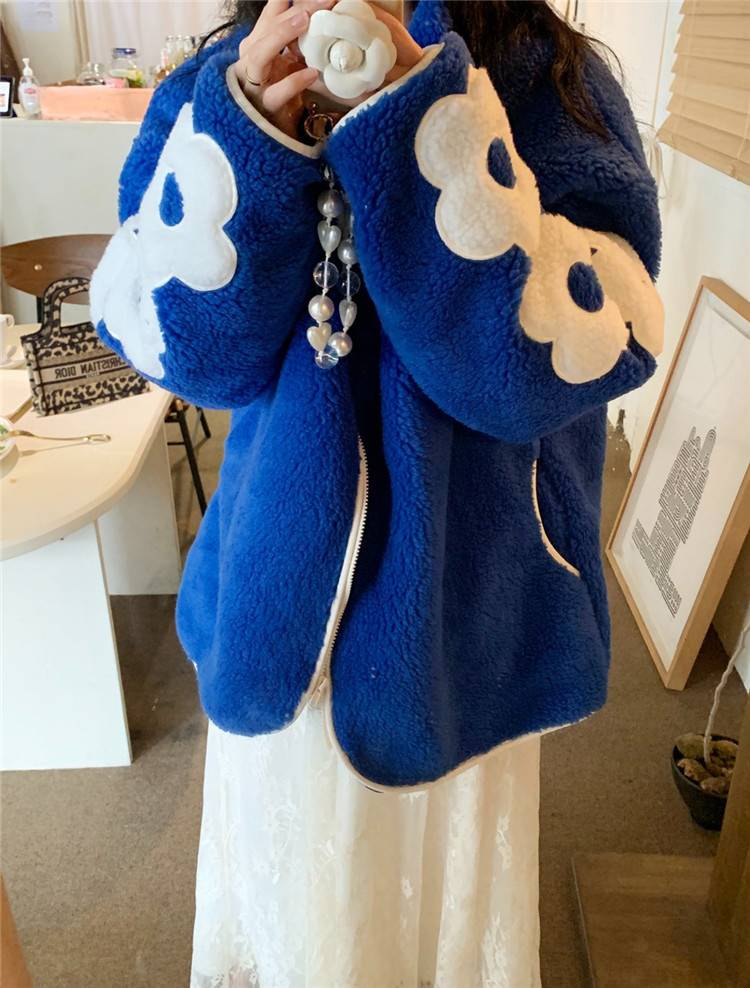 とてもファッション ヤングスタイル レトロ カラーマッチング 子羊の毛 花柄 縫付 コート 暖かい(N)