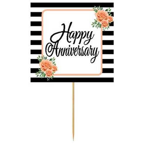黒と白の花柄パーティーケーキカップケーキデコレーショントッパー (ハッピーアニバーサリーカップケーキピック 24 個) CakeSupplyShop Black and White Floral Party Cake Cupcake Decoration Toppers (Happy Anniversary 24pk Cupcake Picks)