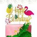 LaVenty グリッターフラミンゴケーキトッパー フラミンゴハッピーバースデーケーキデコレーション トロピカルハワイアンルアウがテーマのパーティー用品 LaVenty Glitter Flamingo Cake Toppers Flamingo Happy Birthday Cake Decoration Tropical Hawaiian