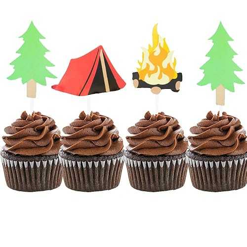 LaVenty Camping Cupcake Toppers Camping Birthday Party Decor Woodlands Party Decor Happy Camper Party Decor Lumberjack Party Decor