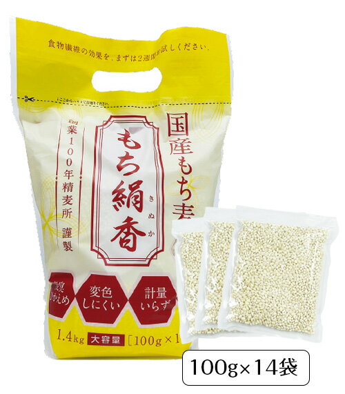 国産もち麦「もち絹香(もちきぬか)」(100g×14袋入)もち麦 雑穀 国産100% 食物繊維 β(ベータ)グルカン 勅使川原精麦所