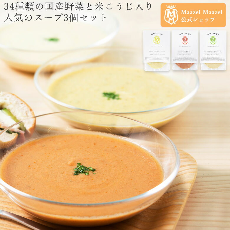 Maazel Maazel 野菜34種&米こうじ入りスープ(180g)×3個セット|送料無料 M18MA3PU 米麹 健康 美容 グルメ スープ マーゼルマーゼル お試し ゆうパケット メール便 電子レンジ 湯煎 プチギフト 無添加 温活スープ CREA掲載商品 34種類 国産野菜 米こうじ スープ スムージー