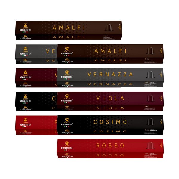 Mokapresso(モカプレッソ) カプセルコーヒー 5種アソートセット VIOLA ROSSO VERNAZZA COSIMO AMALFI 国内正規品 10箱セット(100カプセル)」