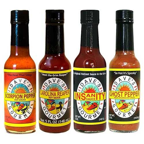 Dave’s Gourmet Insanity Super Hot Sauce Variety 4-Pack - Carolina Reaper, Ghost Pepper, Scorpion & Insanity - Extreme Heat, Bold Flavor - Vegan, Gluten-Free, No Preservatives - 5oz Bottles Dave's Gourmet Dave s Gou