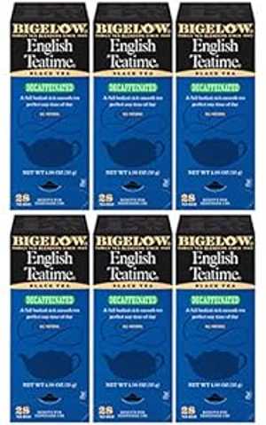 Bigelow カフェインレス イングリッシュ ティータイム ティー 28 カウント ボックス (6 個パック) プレミアム袋入りカフェインフリー紅茶物質が豊富な天然カフェインレスティー、個別のホイル包装袋入り Bigelow Tea Bigelow Decaffeinated English Teatim