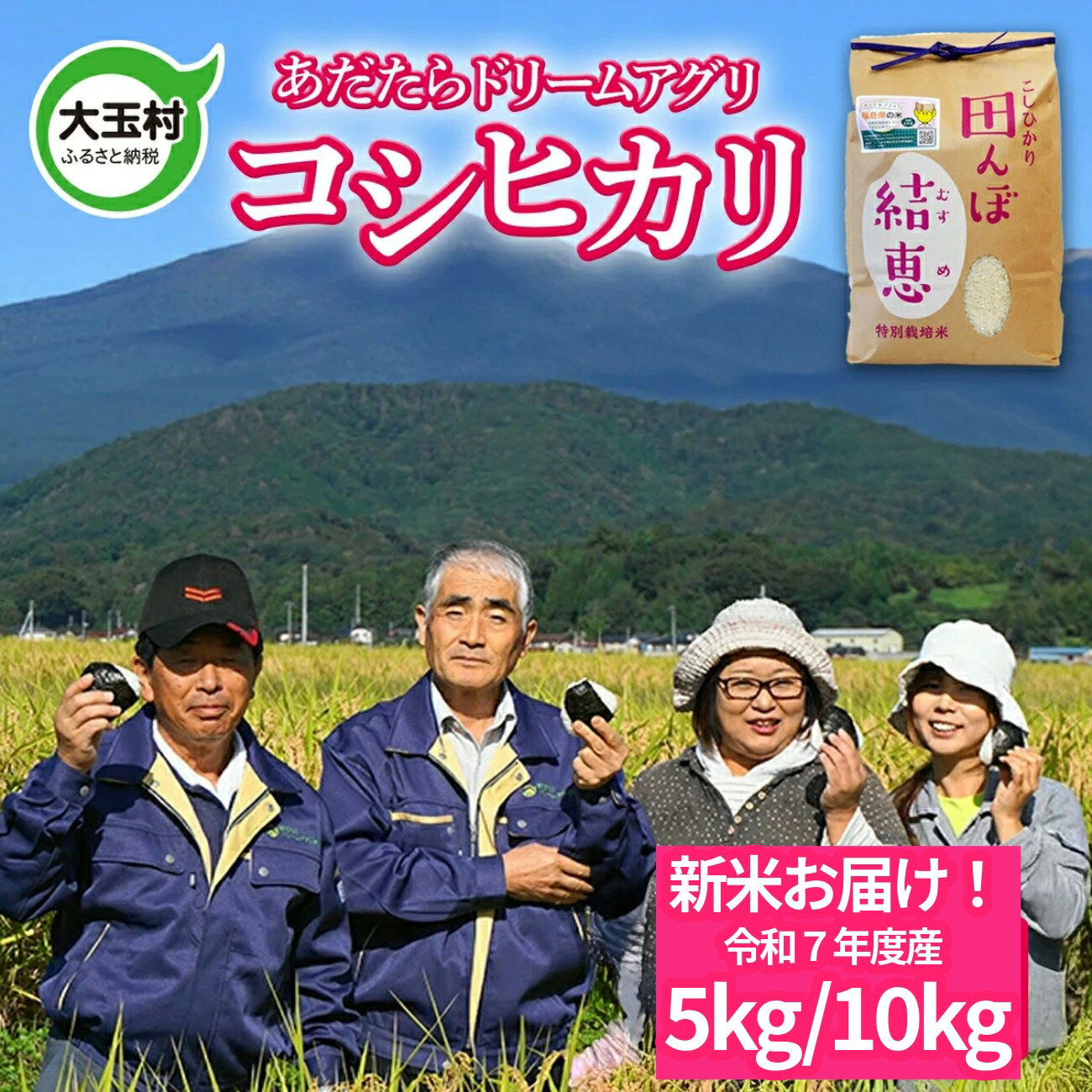 私達が作る大玉村産コシヒカリは濃い味と強い粘りが特徴で、冷めても美味しく頂けます。 「特別栽培米」とは農林水産省が定めた「特別栽培農産物に係る表示ガイドライン」に沿って栽培しています。 女性目線から、毎日食べるお米だからこそ農薬の使用回数を減らし、こだわり、愛情を込めて栽培しています。 皆様に自信をもって私達が育てた特別な栽培米をご提供します。 ※画像はイメージです。 名称 おいしいお米コンクール受賞米あだたらドリームアグリ コシヒカリ 5kg 産地 大玉村 品種 コシヒカリ 内容量 5kg 産年 令和7年 使用割合 単一原料米 精米年月日 注文を受けてから精米 申込可能な期間 在庫無くなり次第終了となります。 発送可能な時期 令和7年9月中旬以降お申し込み順に順次発送予定 発送元 あだたらドリームアグリ株式会社 福島県安達郡大玉村大山字谷地112-3 ・ふるさと納税よくある質問はこちら ・寄付申込みのキャンセル、返礼品の変更・返品はできません。あらかじめご了承ください。 関連キーワード:米作り 福島県 棚田 コシヒカリ 大玉村 ダッシュ お米 受賞米 特別栽培米 大玉カレー に合う米 あだたらドリームアグリ おいしいお米コンクール【ふるさと納税】【令和7年産】新米予約 特別栽培米 コシヒカリ 5kg【 おいしいお米 コンクール 受賞米 あだたら ドリームアグリ 】| da-kh05-R7 私達が作る大玉村産コシヒカリは濃い味と強い粘りが特徴で、冷めても美味しく頂けます。 「特別栽培米」とは農林水産省が定めた「特別栽培農産物に係る表示ガイドライン」に 沿って栽培しています。 女性目線から、毎日食べるお米だからこそ農薬の使用回数を減らし、 こだわり、愛情を込めて栽培しています。 皆様に自信をもって私達が育てた特別な栽培米をご提供します。 ▼テレビでも話題!大玉村の米▼ ▼福島県民のソウルドリンクといえばこれ!▼ 入金確認後、注文内容確認画面の【注文者情報】に記載の住所にお送りいたします。 発送の時期は、寄付確認後30日以内を目途に、お礼の特産品とは別にお送りいたします。