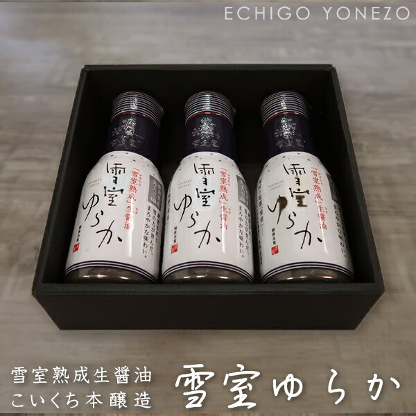 【天然雪室冷蔵】越後雪室屋 生しょうゆ 雪室ゆらか 鮮度ボトル ギフトセット 200ml× 3本詰 酸化防止密封ボトル使用 無添加 越後良寛 新潟県産品 ホクショク soy sauce brewing with red wine made in japan