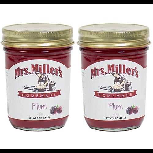 Mrs. Miller's Amish Homemade Plum Jelly, 8 oz - Pack of 2 (Boxed)