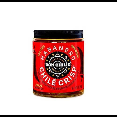 Don Chilio Hot Habanero Mexican Chile Crisp, 5 oz. Crunchy Sliced Habanero Fried Chili Peppers in Hot Seasoned 100% Olive Oil Keto-Friendly, Vegan, Gluten Free