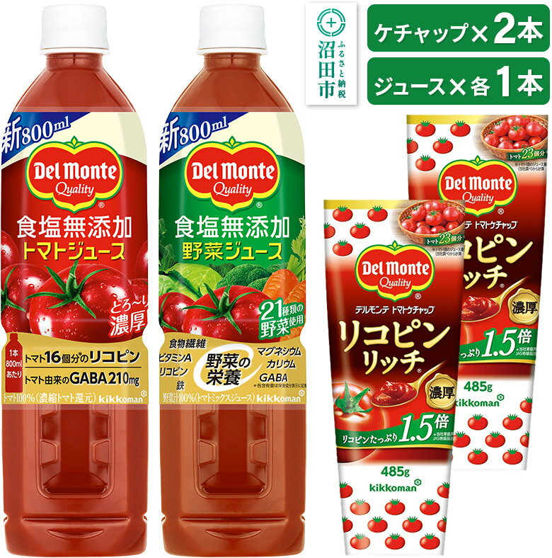 【ふるさと納税】デルモンテ リコピンリッチトマトケチャップ 2本 食塩無添加野菜ジュース 1本 食塩無添加トマトジュース 1本