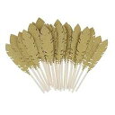 30個 フェザーケーキトッパー カップケーキフードピック 結婚式誕生日パーティーデコレーション用 - ゴールデン FRECI 30pcs Feather Cake Toppers Cupcake Food Picks for Wedding Birthday Party Decoration - Golden