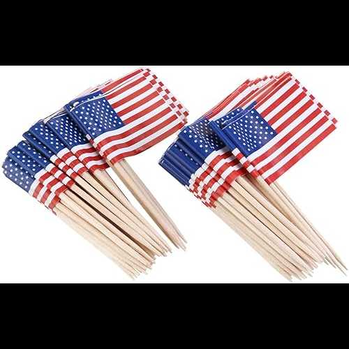 PRETYZOOM スティック上のアメリカの国旗 手持ちアメリカの木製スティックフラッグ アメリカの国旗 カップケーキトッパー アメリカの国旗 ケーキピック 7月4日のデコレーション用 PRETYZOOM American Flags on Stick Handheld American Wooden Stick Flag