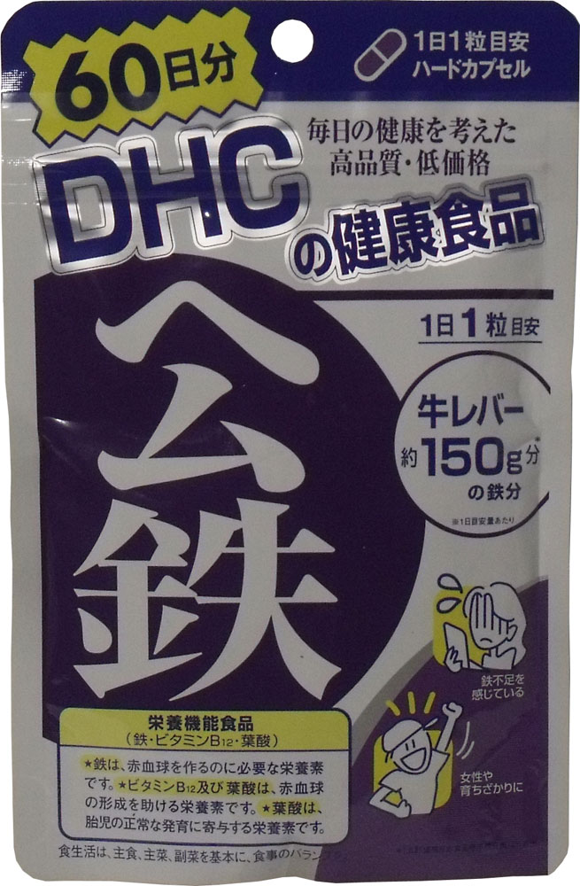 吸収を考えたヘム鉄を500mg配合。不足鉄分の効率補給に!●鉄不足を感じている。●女性や育ちざかりに。●栄養機能表示・鉄は、赤血球を作るのに必要な栄養素です。・ビタミンB12及び葉酸は、赤血球の形成を助ける栄養素です。・葉酸は、胎児の正常な発育に寄与する栄養素です。【栄養機能食品】鉄・ビタミンB12・葉酸【名称】ヘム鉄加工食品【原材料】ヘム鉄、ゼラチン、グリセリン脂肪酸エステル、セルロース、着色料(カラメル、酸化チタン)、微粒二酸化ケイ素、葉酸、ビタミンB12【栄養成分(2粒692mgあたり)】熱量:2.8kcaLたんぱく質:0.48g脂質:0.07g炭水化物:0.06g食塩相当量:0.025g鉄:10.0mg(147)葉酸:75μg(31)ビタミンB12:1.0μg(42)※鉄はヘム鉄として500mg配合しています。※上記( )内の値は、栄養素等表示基準値(18歳以上、基準熱量2200kcal)に占める割合(%)です。【召し上がり方】1日2粒を目安に水またはぬるま湯でお召し上がりください。【保存方法】直射日光、高温多湿な場所をさけて保存してください。【注意】・一日の目安量を守って、お召し上がりください。・お身体に異常を感じた場合は、摂取を中止してください。・原材料をご確認の上、食物アレルギーのある方はお召し上がりにならないでください。・薬を服用中あるいは通院中の方、妊娠中の方は、お医者様にご相談の上お召し上がりください。・お子様の手の届かないところで保管してください。・開封後はしっかり開封口を閉め、なるべく早くお召し上がりください。吸収を考えたヘム鉄を500mg配合。不足鉄分の効率補給に!●鉄不足を感じている。●女性や育ちざかりに。●栄養機能表示・鉄は、赤血球を作るのに必要な栄養素です。・ビタミンB12及び葉酸は、赤血球の形成を助ける栄養素です。・葉酸は、胎児の正常な発育に寄与する栄養素です。【栄養機能食品】鉄・ビタミンB12・葉酸【名称】ヘム鉄加工食品【原材料】ヘム鉄、ゼラチン、グリセリン脂肪酸エステル、セルロース、着色料(カラメル、酸化チタン)、微粒二酸化ケイ素、葉酸、ビタミンB12【栄養成分(2粒692mgあたり)】熱量:2.8kcaLたんぱく質:0.48g脂質:0.07g炭水化物:0.06g食塩相当量:0.025g鉄:10.0mg(147)葉酸:75μg(31)ビタミンB12:1.0μg(42)※鉄はヘム鉄として500mg配合しています。※上記( )内の値は、栄養素等表示基準値(18歳以上、基準熱量2200kcal)に占める割合(%)です。【召し上がり方】1日2粒を目安に水またはぬるま湯でお召し上がりください。【保存方法】直射日光、高温多湿な場所をさけて保存してください。【注意】・一日の目安量を守って、お召し上がりください。・お身体に異常を感じた場合は、摂取を中止してください。・原材料をご確認の上、食物アレルギーのある方はお召し上がりにならないでください。・薬を服用中あるいは通院中の方、妊娠中の方は、お医者様にご相談の上お召し上がりください。・お子様の手の届かないところで保管してください。・開封後はしっかり開封口を閉め、なるべく早くお召し上がりください。