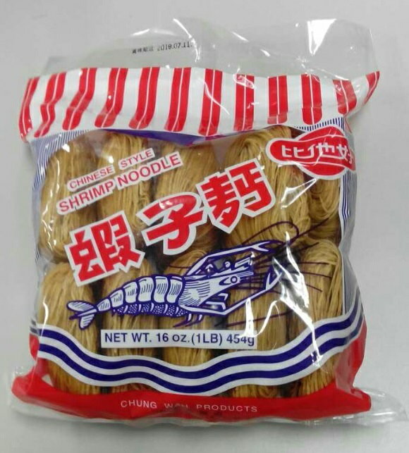 商品名:香港蝦子麺(えび麺) 内容量:454g 原材料名:小麦粉、えび、たまご、塩、砂糖、調味料(アミノ酸)、かんすい 調理方法:お湯を500cc沸騰させ、めんを入れて軽くほぐしながら3分間煮ます。 自分好みの調味料・具材を加えてよくまぜて出来上がり。 (注意:調味料は入っていません) 原産国:香港 保存方法:直射日光を避け、常温で保存