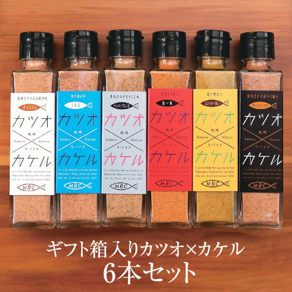 【ギフト箱入り】 食品 ふりかけ 魚 カツオ×カケル 詰め合わせ おしゃれ箱入り 6本セット(全6種×各1本) 55g×6 送料無料 鰹 調味料 ギフト プレゼント お土産 おしゃれ ご飯のお供 お取り寄せ 混ぜごはん かつお節 鹿児島 株式会社MRC タビグルメ