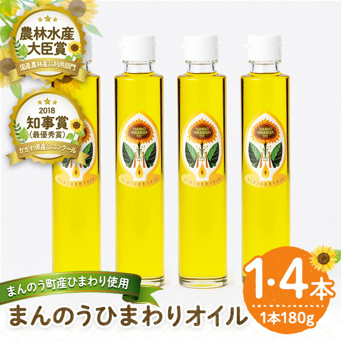 【ふるさと納税】<本数が選べる>まんのうひまわりオイル (180g×1本・4本) 国産 オイル 油 ピュアオイル 食用油 調理油 ひまわり ヒマワリ セット ギフト プレゼント 保存料不使用 オメガ9 オレイン酸 贈答 贈答品 ビタミンE 新登場【man243】【サンフラワーまんのう】