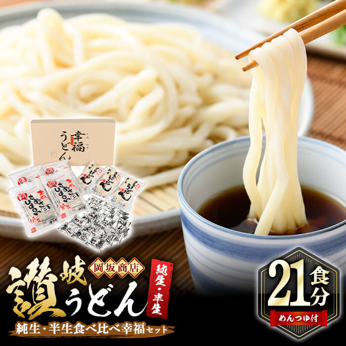 【ふるさと納税】本場讃岐うどん <つゆ付・半生・純生・熨斗対応可>「二番・食べ比べ幸福セット」(21食分) めんつゆ付 食べ比べ 本場 讃岐 讃岐うどん さぬき 香川県 半生 純生 小麦 麺 粉もの 名産品 セット ギフト プレゼント お中元 熨斗 のし 【man011】【岡坂商店】