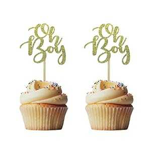 Morndew 24 個 Oh Boy ゴールドグリッター誕生日カップケーキトッパー 赤ちゃんの最初の誕生日ベビーシャワーの装飾用 Morndew 24PCS Oh Boy Gold Glitter Birthday Cupcake Toppers for Baby First Birthday Baby Shower Decoration