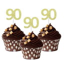 Sumerk 24 個 90 カップケーキトッパーゴールドグリッター 90 歳の誕生日カップケーキピック記念パーティーの装飾 Sumerk 24PCS 90 Cupcake toppers Gold Glitter 90th Birthday Cupcake Picks Anniversary Party Decorations