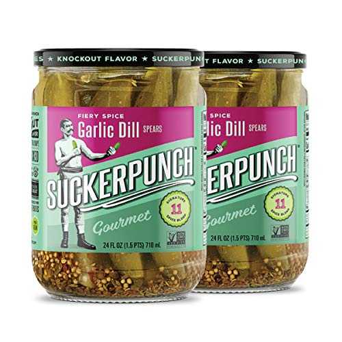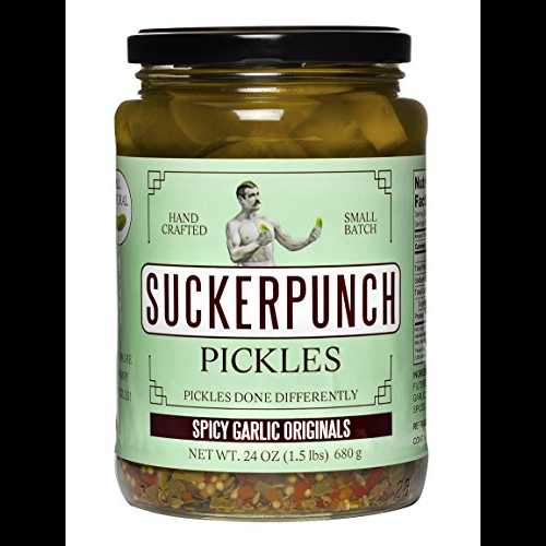 SuckerPunch スパイシーガーリックオリジナルピクルス 24 オンス、12 個パック SuckerPunch Gourmet SuckerPunch Spicy Garlic Original Pickles 24 Ounce, Pack of 12