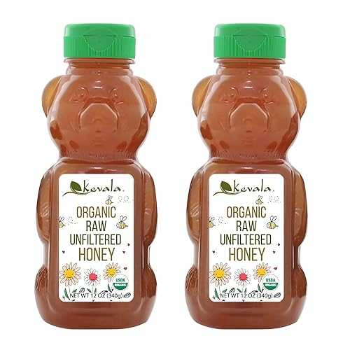 Kevala Organic Raw Unfiltered Honey Bear Pure Natural Essence Sweetener, No Added Sugar, Gluten and Pesticide Free, Squeeze Bottle, 12 oz (Pack of 2)
