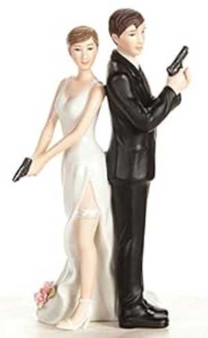 Wedding Collectibles Super Sexy Spy Guns Wedding Cake Topper with Bride and Groom Fun, Sexy, Humorous Figurine Fine Porcelain 5.5 Inches