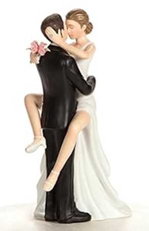 Wedding Collectibles Funny Sexy Over the Threshold Wedding Cake Topper with Bride and Groom Fun, Sexy, Humorous Figurine Groom Holding Bride Fine Porcelain 5.5 Inches