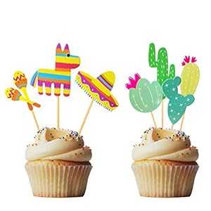 45個 メキシカンフィエスタ カップケーキトッパー メキシコ サボテン ロバ ソンブレロ ペッパー タコス マラカス ギター カップケーキ トッパー ケーキピック メキシコがテーマのケーキデコレーション パーティーデコレーション MOAXMOA 45 Pcs Mexican
