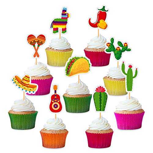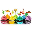 36個 フィエスタ カップケーキトッパー メキシコテーマ ケーキデコレーション メキシコテーマ サボテン ロバ タコス ペッパー ソンブレロ 口ひげ パーティーデコレーション用 BCHOCKS 36 Pcs Fiesta Cupcake Topper Mexican Theme Cake Decoration fo