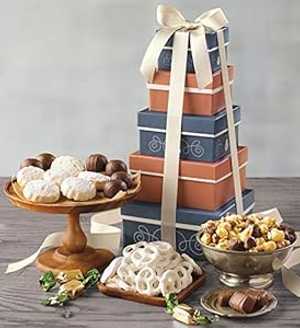 ハリー&デイビッド タワー オブ トリーツ スイート チョコレート トリュフ、ポップコーン ギフト タワー Harry & David Tower of Treats Sweet Chocolate Truffles, Popcorn Gift Tower
