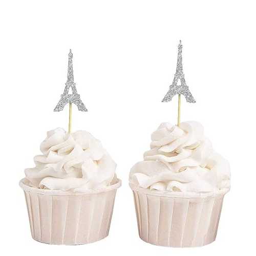 最愛のお土産、エッフェル塔カップケーキトッパー、ウェディングパーティーのデザートデコレーション - 20個パック Darling Souvenir, Eiffel Tower Cupcake Toppers, Wedding Party Dessert Decorations - Pack Of 20