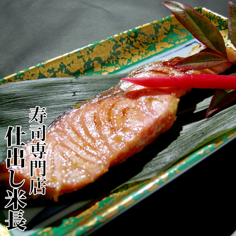 詳しくは、こちらから→ギフト対応 商品詳細 商品名 キングサーモン西京漬け【5切れ】 原材料 ノルウェー産 キングサーモン、西京味噌、調味料(酒、赤穂の塩、味醂) 賞味期限 製造日(発送日)より5日間(冷蔵)/30日間(冷凍) ※商品到着に2日以上かかる地域への発送は出来ません。商品到着後は出来るだけお早めにお召しあがり下さい。 内容量 キングサーモン西京漬けx5切れ (1切れ 約100g) お召し上がり方 簡単にお召し上がりいただけます。簡単な食べ方は、商品に説明書をお付けいたしますので、ご安心下さい。 ご注意 味噌に漬けたままですと味が濃くなっていきます。お好みの漬かり具合で味噌から取り出して下さい。到着時が食べ頃です。 お届け・送料等 送料 料金表⇒こちら お届け方法 冷蔵便(ヤマト運輸) 配達日・時間指定 発送日は4日後以降からのご指定でお願いします。※当店からのメールで到着日をご確認下さい。時間指定については、地域によりご指定時間に配達出来ない場合があります。(注文後メールにてお知らせいたします)ページ下部の発送目安表をご覧下さい。-キングサーモン西京漬け- 【5切れ用】 贅沢!! 生のキングサーモンを 自家製西京味噌に漬け込みました。 米麹をふんだんに使用した西京味噌。 味噌漬け特有の風味出る味噌を使っています。 西京味噌の旨味が染み込んで より深い濃厚な味わいになってます。 ◆お知らせ◆ 注文を受けてから味噌に漬けます。 到着日が食べ頃になるように発送いたします。 到着後そのまま味噌に漬けておくと味が濃くなりますので 味噌から取り出して冷蔵庫で保存して下さい。 濃い味がお好みの方は味噌がついた状態で冷蔵庫で保存して下さい。 ※商品は味噌が切り身に直接つかないようにガーゼ包んでいますので 絶対に洗わずにそのまま焼いて下さい。 お届けは冷蔵状態ですので到着後すぐに 冷蔵庫で保存して下さい。 ※保存料などは使用しておりませんので お早めにお召し上がり下さい。 キングサーモン西京漬け/サーモン味噌漬け【5切れ用】 関西は、兵庫県明石市より出店!日本のど真ん中!明石市より美味しお寿司を地方発送致します産直! ノルウェー産の超特大サイズ!7kgを使用。 脂のノリがスゴイ!大きいほど脂の品質やノリ具合が全然違ってきます。当店オリジナルブレンド西京味噌に付け込み、サーモンの旨味を最大限に引き出しました。生でも美味しいキングサーモンを贅沢にも味噌漬けにしちゃいました。なんとも贅沢な一品です。ご家庭はもちろん、お中元・お歳暮はもちろん、贈答用によく使われています。贈り物にいかがですか? お中元・お歳暮はもちろん、贈答用によく使われています。贈り物にいかがですか?発送(梱包)状態は、木箱に入れ包装紙で包み、そのままでも贈答用や贈り物にも使えます。大切なお方にも是非、お送り下さい。