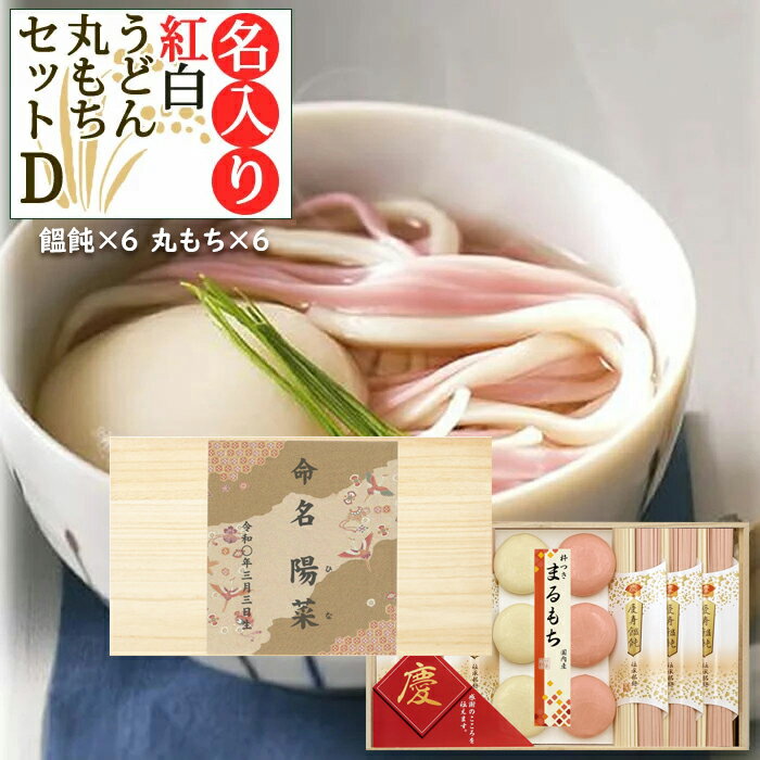 【名入れ無料】慶びのめんめん 内祝い お返し 出産 名入れ 紅白うどん 丸もち 詰合D 紅白慶寿饂飩 6束 紅白丸もち 6個入 木箱入り 出産内祝い 結婚 結婚内祝い 入学内祝い 七五三 お年賀