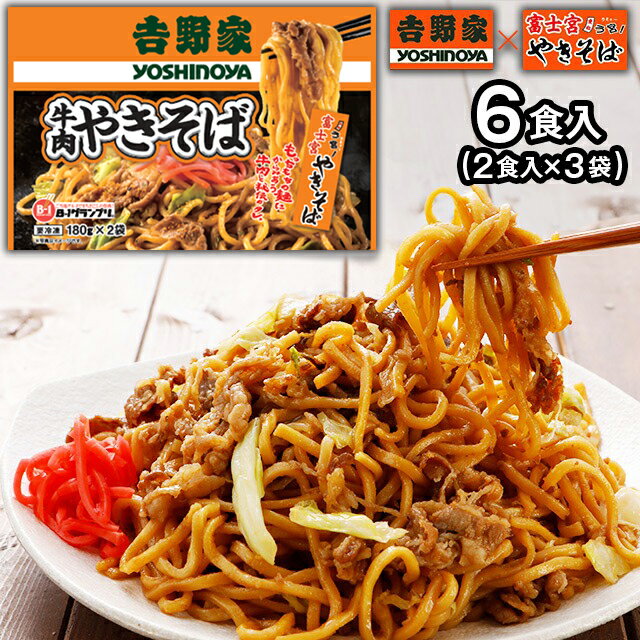 吉野家 牛肉やきそば 計6食 (2食×3袋) 吉野家×富士宮焼きそば 送料無料 冷凍 焼きそば やきそば 食品 お土産 ご当地 B級 グルメ 詰め合わせ ギフト プレゼント レンチン 業務用 保存食 食べ放題 [冷凍]