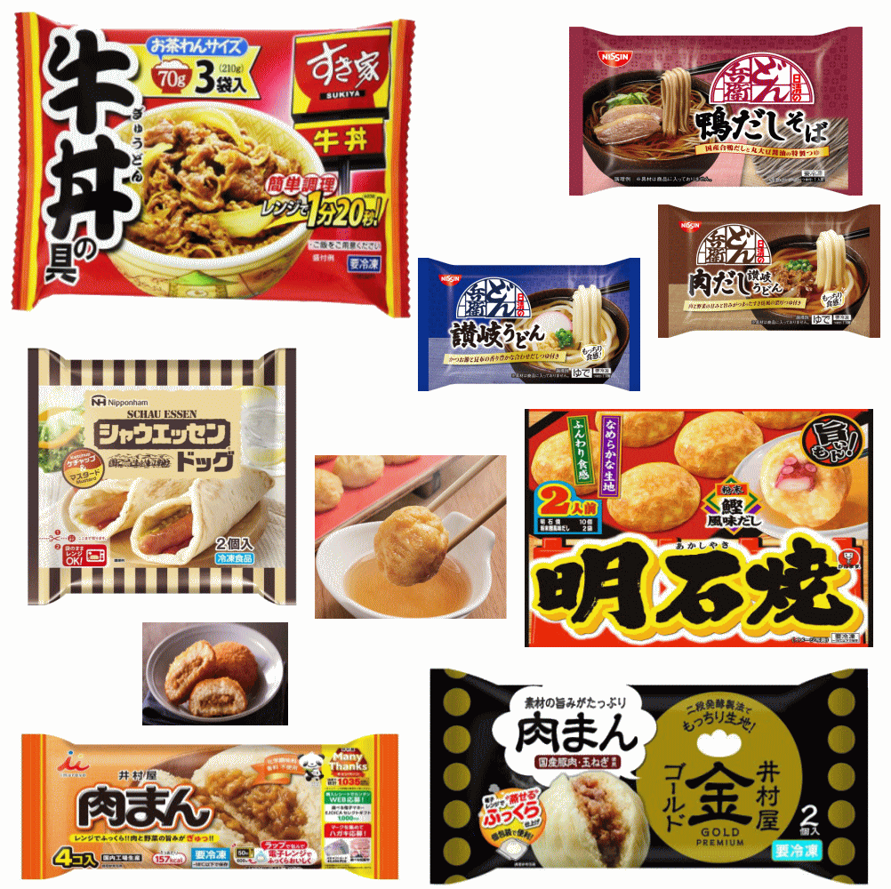 【新発売】 冷凍食品 8種 すき家牛丼の具 シャウエッセンドッグ 肉まん うどん そば 明石焼き 関東圏送料無料