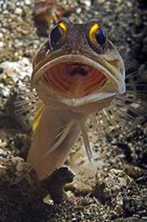 Posterazzi Gold-speck jawfish mouth wide open Lembeh Strait Bitung North Sulawesi Indonesia Poster Print (22 x 34)