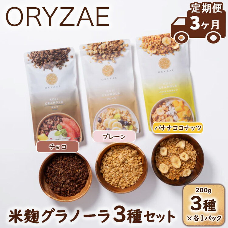 【ふるさと納税】【定期便3ヶ月】オリゼ/米麹グラノーラ3種セット(プレーン/チョコ/バナナココナッツ)※着日指定不可