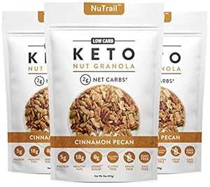 NuTrail - ケトナッツ グラノーラ ヘルシーな朝食用シリアル - 低炭水化物スナックと食品 - 正味炭水化物 2g - アーモンド、ピーカンナッツ、ココナッツなど (11 オンス) (1 個) (3 個) Low Karb NuTrail - Keto Nut Granola Healthy Breakf