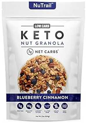 低炭水化物 NuTrail、ケト ブルーベリー ナッツ グラノーラ、ヘルシーな朝食用シリアル、低炭水化物スナックと食品、アーモンド、ピーカンナッツ、ココナッツなど、正味炭水化物 3 g、1.37 ポンド、22 オンス Low Karb NuTrail, Keto Blueberry Nut Granola