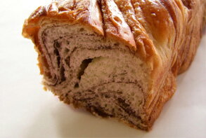チョコのスプレッドを織り込んでいますが、あっさりとしたお味に仕上げております。 長く食べていただいても飽きのこない味で、朝食に毎朝食べていただいてもしつこくありません。 プレーンやレーズンとともに人気のデニッシュ食パンです。 ※化粧箱をご購入される場合は、どの商品を化粧箱にお入れするかを備考欄にご記入ください。 ○商品内容 【サイズ】 3斤(約125×125×340mm)創業当時のサイズ 【原材料】 小麦粉(国内製造)、ファットスプレッド、チョコレートスプレッドB、砂糖、マーガリン、卵、糖類(オリゴ糖、ぶどう糖)、塩、パン酵母、食用植物油、粉乳、澱粉、小麦蛋白/乳化剤、ソルビット、香料、リン酸塩(Na)、甘味料(スクラロース)、着色料(カロチン、アナトー)、酸化防止剤(V・E)、増粘多糖類、PH調整剤、ビタミンC(一部に小麦、卵、大豆、乳成分を含む) 【栄養成分表示(100gあたり)】 ●熱量415kcal ●たんぱく質7.0g ●脂質19.0g ●炭水化物47.0g ●食塩相当量1.0g ※表示は目安です。 ○賞味期限 製造日含む常温で7日間 ※賞味期限内にスライスして冷凍保存される場合は、約2週間美味しくいただけます。 ○お届けについて お届けは、ご注文日より8日以降~1ヶ月以内でご選択いただけます。(繁忙期を除く) ご希望日のない場合、ご注文受付日より1週間前後でお届けいたします。 土曜・日曜・祝日にご注文の場合は、受付日は翌営業日(平日)となります。 また、15時以降のご注文は、翌営業日の受付となります。 ※前払いのご注文は、入金確認日が受付日となります。 ※ご家庭でスライスされる時のご注意 弊社製品には、品質保持剤が同梱されております。 スライスされる時は、品質保持剤を取り除きスライスしてください。 まれにお客様が品質保持剤を切られる場合がございます。 使用しております品質保持剤は、人体には非常に安全な物質を使用しておりますが、切られますと「白い粉末」が出てしまいます。 スライスされる場合はご注意お願い申し上げます。 【元祖デニッシュ食パンの特徴】 デニッシュ食パンは、通常の食パンとは違いパン生地に油脂を織り込むことにより焼き上げた際、パン生地に空気の層も出来上がりソフトな食感に焼きあがるのが特徴です。 その為、焼き上げた際パン自体の重みで、腰折れ(パン横側のへこみ)が発生しやすいパンでもあります。 弊社では、腰折れのパンを少なく焼き上げる努力を行っておりますが、一本、一本手作りのため、商品により腰折れの状態が若干強く出る商品もございます。 見た目は、若干悪い商品も御座いますが、空気の層がしっかりと入ったソフトなパンであり、美味しさはそん色なく、デニッシュ食パンの特徴の一つとご理解いただければと存じます。※こちらの商品は、定番デニッシュの3斤サイズ(縦125mm×横125mm×長さ340mm)です。
