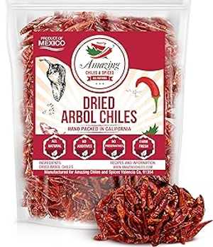 Amazing Chiles & Spices Chile De Arbol 4oz - Dried Whole Red Chili Peppers, Premium All Natural Stemless, Resealable Bag. Use in Mexican, Chinese and Thai Dishes. Spicy Hot Heat Full of Flavor